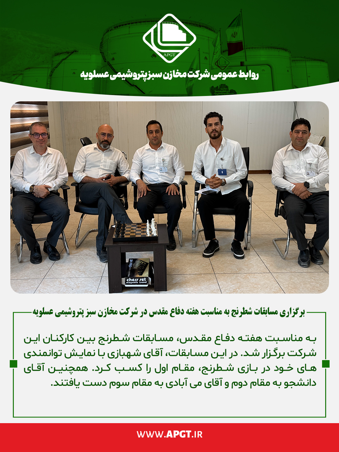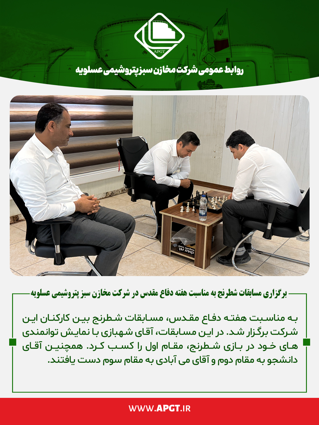 برگزاری مسابقات شطرنج به مناسبت هفته دفاع مقدس در شرکت مخازن سبز پتروشیمی عسلویه