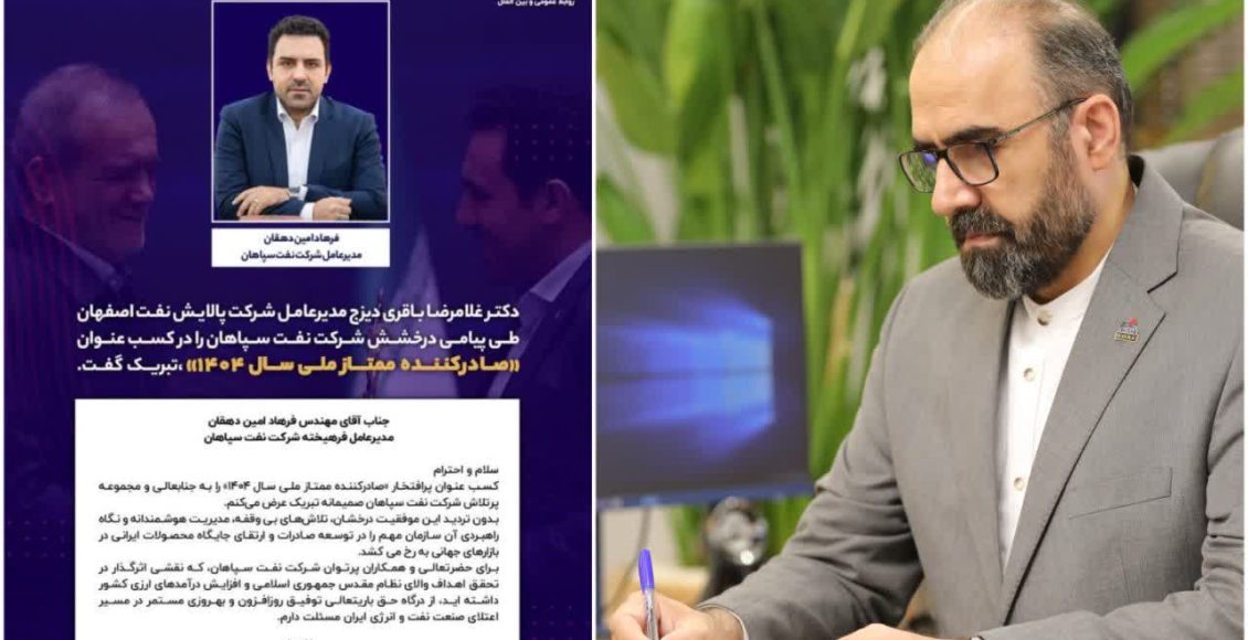 کسب عنوان پرافتخار «صادرکننده ممتاز ملی سال ۱۴۰۴» را به جنابعالی و مجموعه پرتلاش شرکت نفت سپاهان صمیمانه تبریک عرض میکنم.