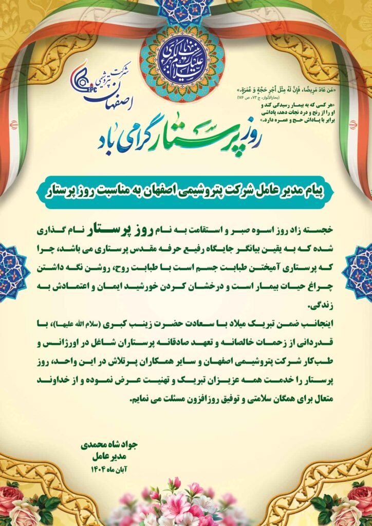 پیام مدیرعامل شرکت پتروشیمی اصفهان به مناسبت روز پرستار