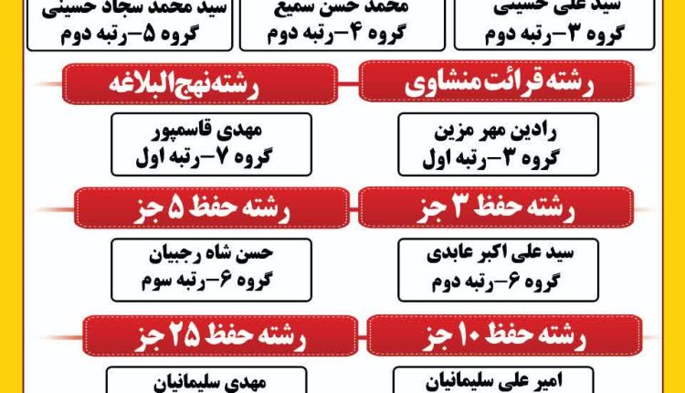 در این دوره از مسابقات، ۴۲ نفر از همکاران و خانوادههای کارکنان شرکت پالایش نفت اصفهان در دو بخش برادران و خواهران حضور یافتند و با کسب مجموع ۲۴ رتبه برتر در رشتههای مختلف، عملکردی درخشان و تحسینبرانگیز از خود به جا گذاشتند.