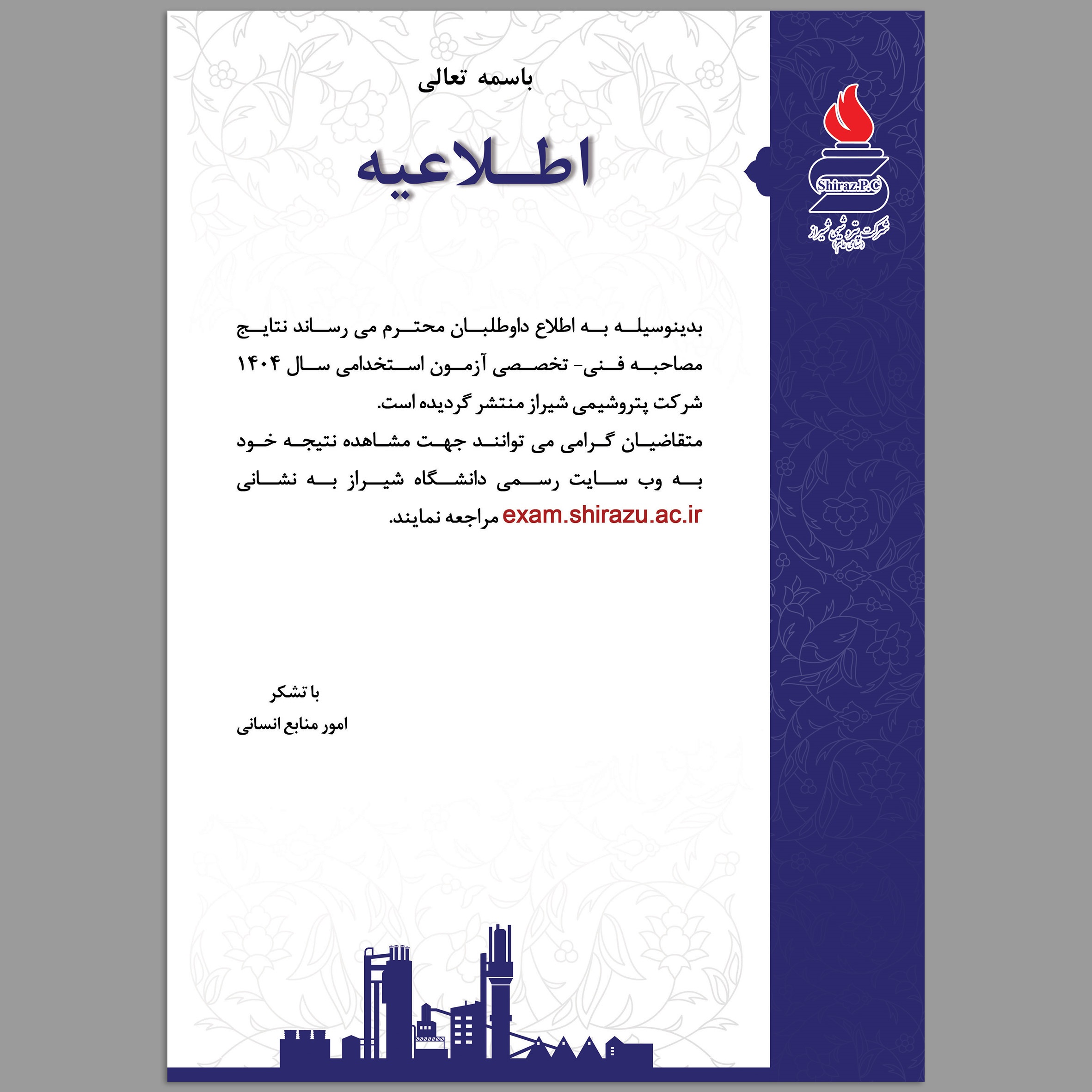 اعلام نتایج مصاحبه فنی-تخصصی آزمون استخدامی سال ۱۴۰۴ شرکت پتروشیمی شیراز