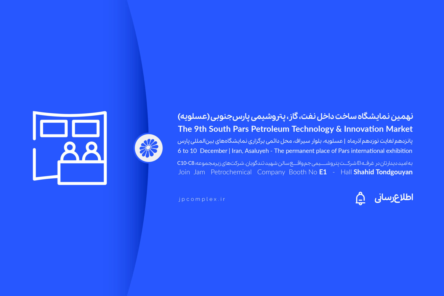 شرکت پتروشیمی جم در سالن شهید تندگویان غرفه شمارهE1 از ساعت ۹:۰۰ الی ۱۷:۰۰ پذیرای متخصصان و مدعوین گرامی است.