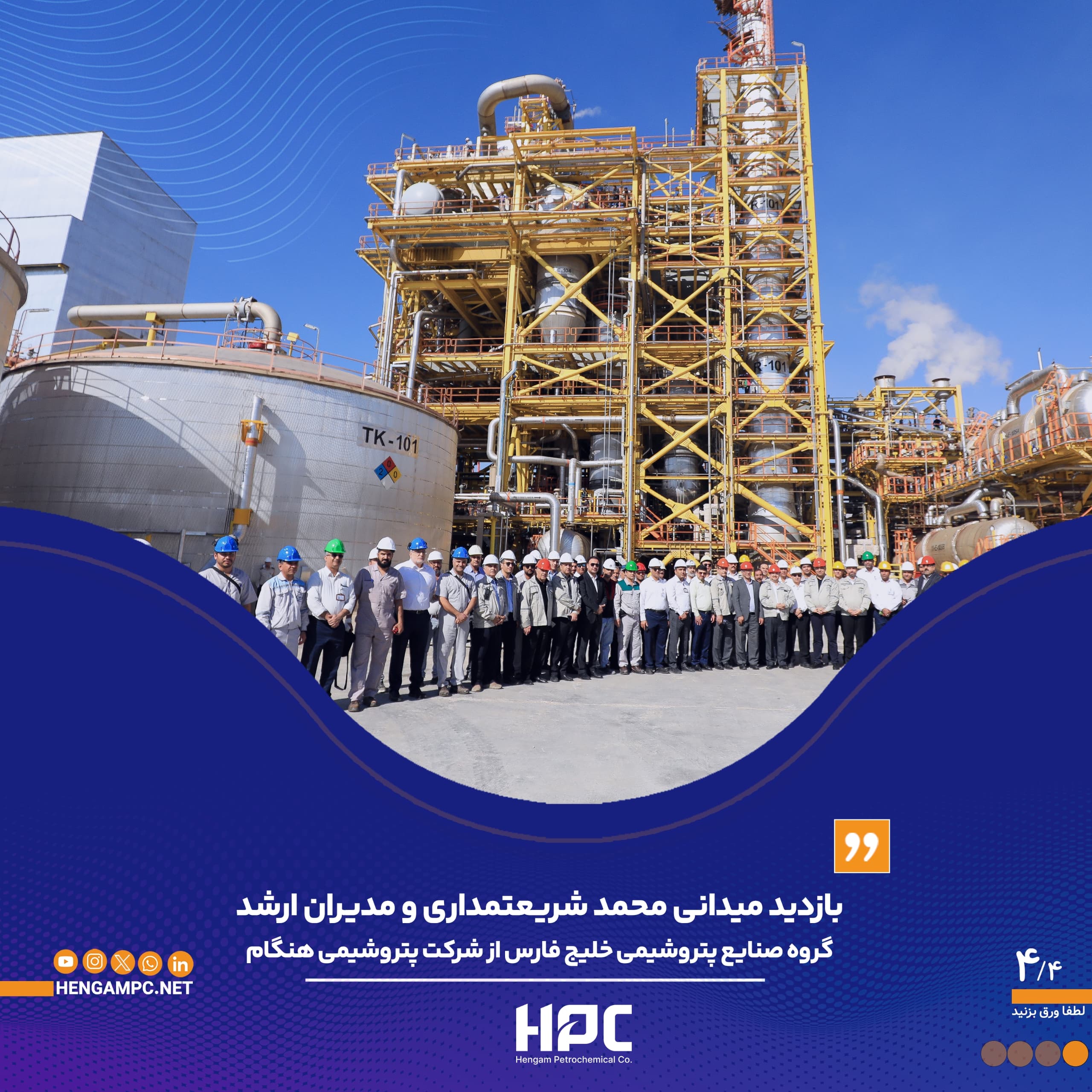 امروز محمد شریعتمداری مدیر عامل گروه صنایع پتروشیمی خلیج‌فارس به همراه مدیران ارشد این هلدینگ، بصورت میدانی از پتروشیمی هنگام بازدید کردند.