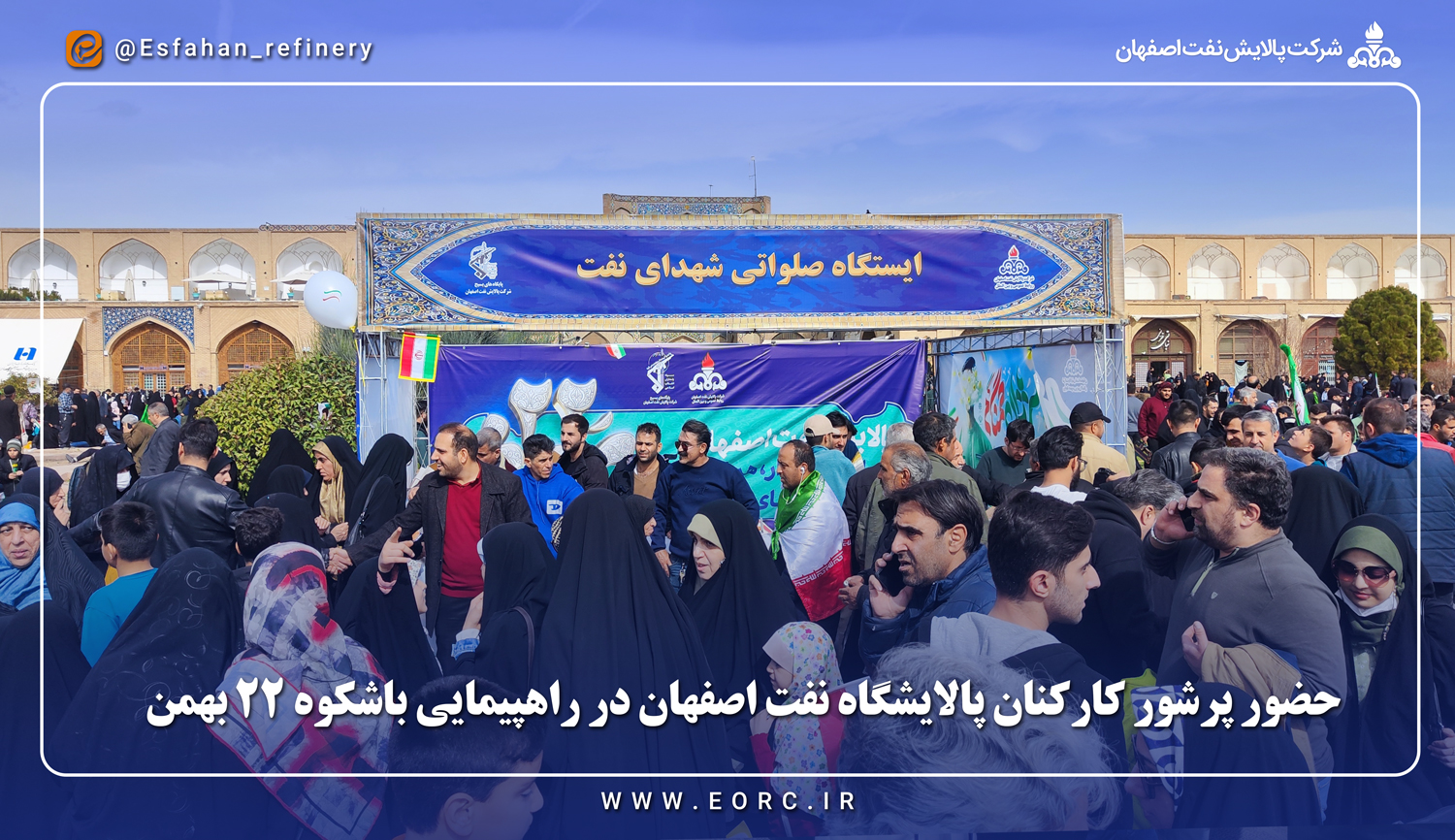 همزمان با سالروز پیروزی شکوهمند انقلاب اسلامی، کارکنان شرکت پالایش نفت اصفهان همگام با اقشار مختلف مردم، حضوری گسترده، منسجم و پرشور در راهپیمایی ۲۲ بهمن داشتند و بار دیگر با آرمان‌های بلند امام خمینی (ره)، شهدای انقلاب اسلامی و منویات مقام معظم رهبری تجدید میثاق کردند.