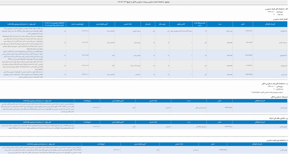 مشخصات کمیته حسابرسی و واحد حسابرسی داخلی پتروشیمی خارک